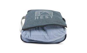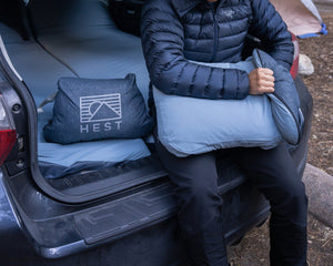 HESTのキャンプピローは、持ち運びカバー一体型で、コンパクトに収納可能です。